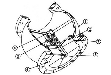 靜音式止回閥主要由閥體、閥座、導流體、閥瓣、軸承及彈簧等主要零件組成,內部流道采用流線型設計,壓力損失極小。閥瓣啟閉行程很短,停泵時可快速關閉,防止巨大的水錘聲,具有靜音關閉的特點。